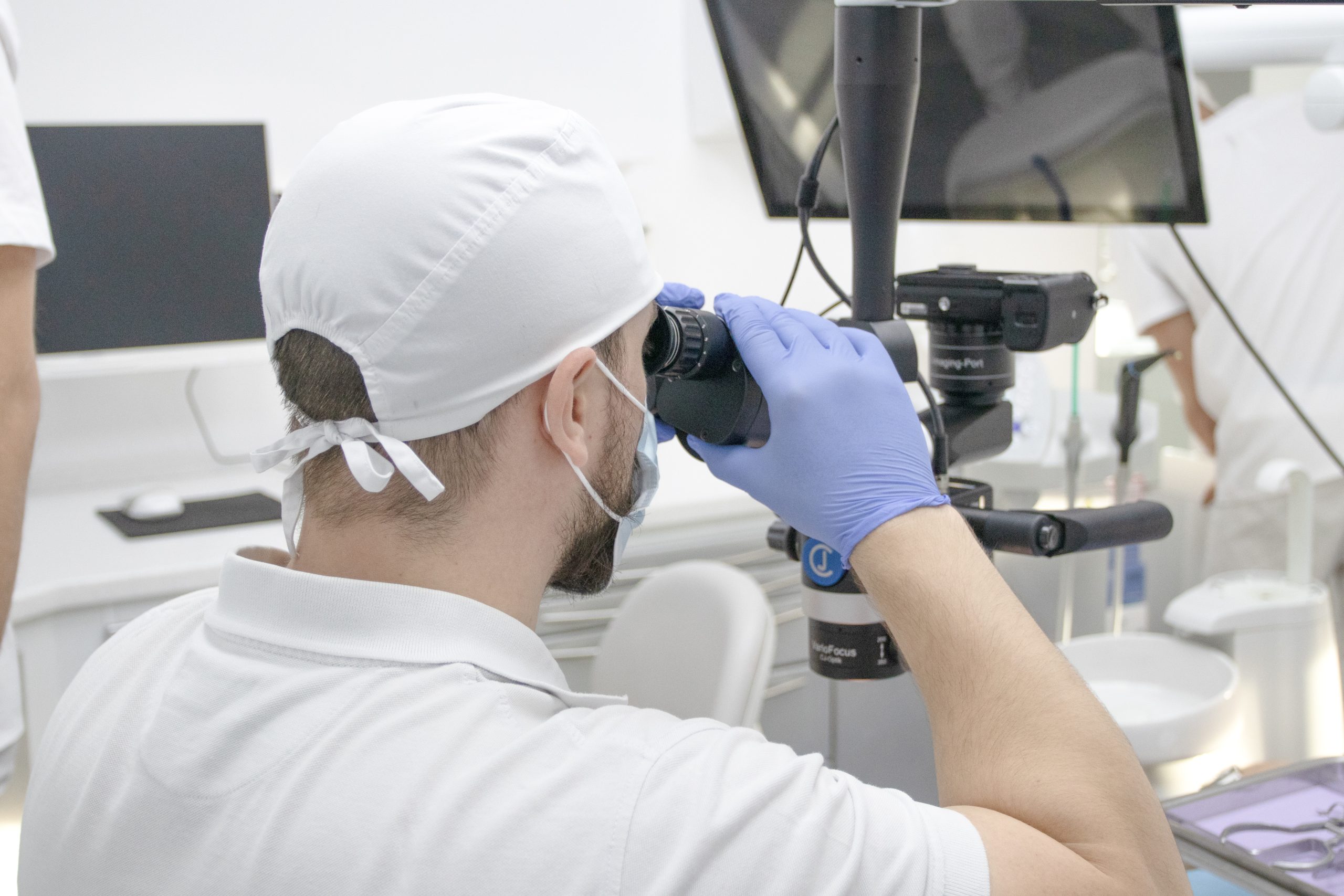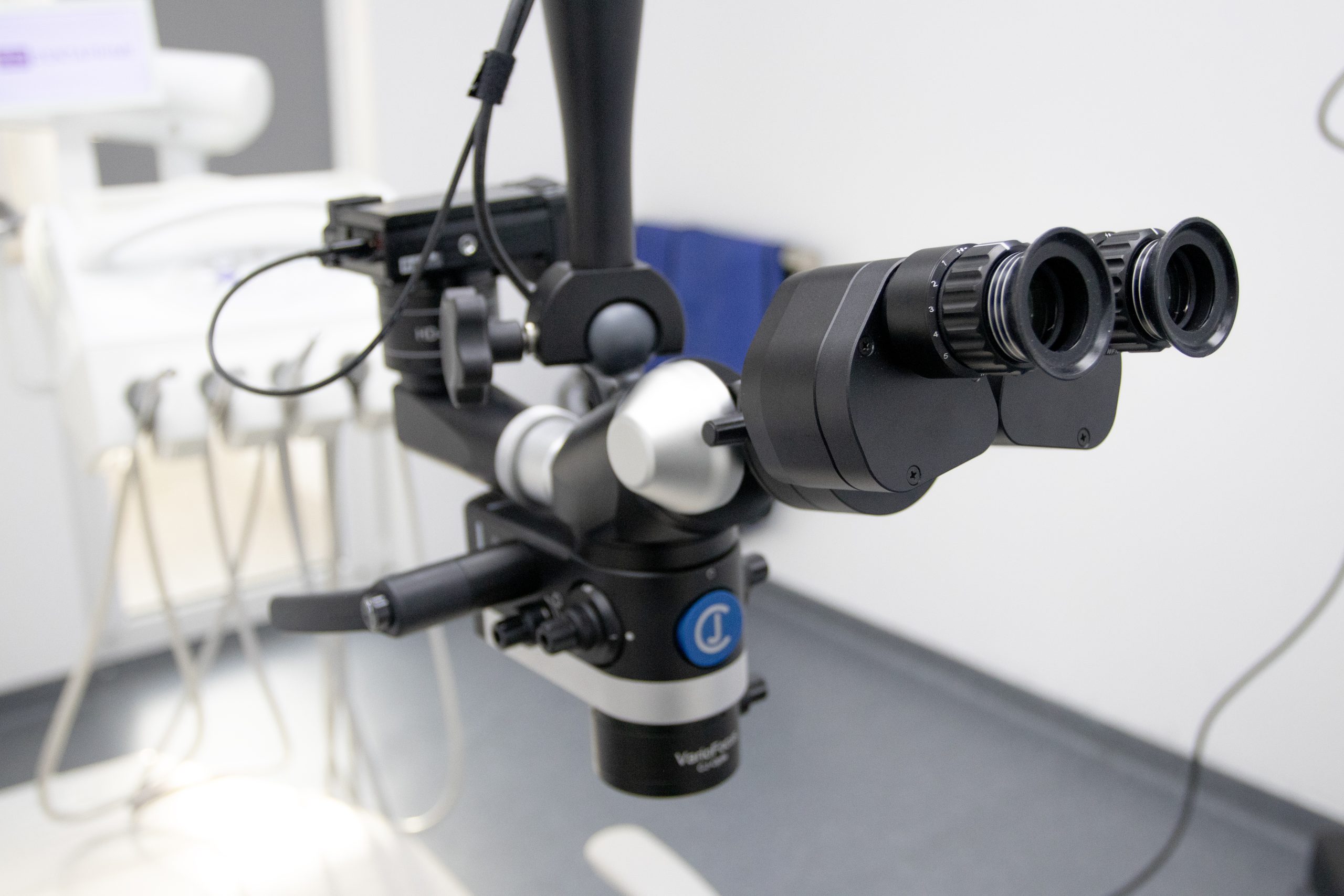 Ein Endodontie-Mikroskop ist ein spezielles Mikroskop, das für zahnärztliche Behandlungen, insbesondere für Wurzelkanalbehandlungen, entwickelt wurde. Mit seiner extremen Vergrößerungsleistung und speziellen Beleuchtung können wir Strukturen erkennen, die mit bloßem Auge unsichtbar sind.