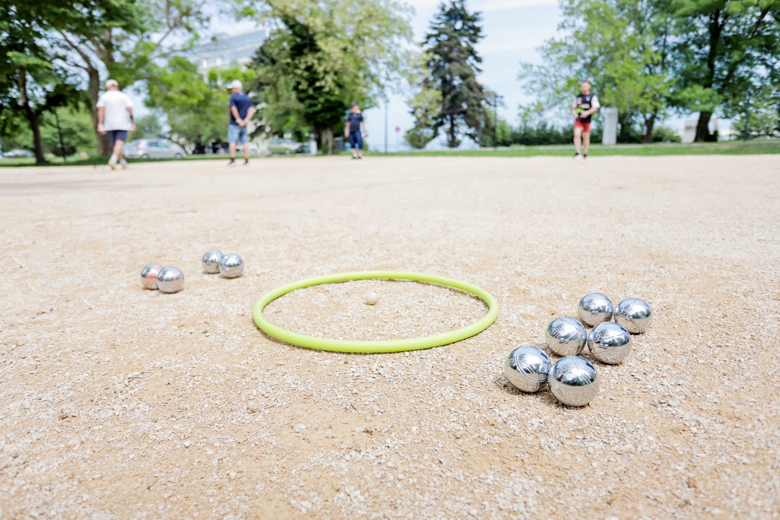Petanque ist ein traditionelles französisches Kugelspiel, das auf Kies- oder Sandplätzen gespielt wird. Ziel des Spiels ist es, metallene Kugeln (Boules) so nah wie möglich an eine kleine hölzerne Kugel (das „Schweinchen“ oder „Cochonnet“) zu werfen. Es kann in Einzel-, Doppel- oder Dreiermannschaften gespielt werden und erfordert sowohl Geschick als auch Strategie.